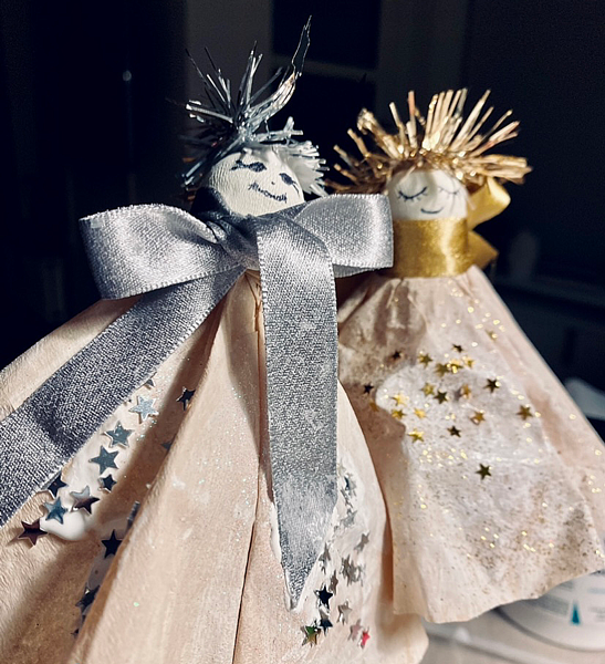 Vi laver hemmelige gaver i juleværkstedet (billedkunstlokalet) så det er kun for børnene, forældre / andre voksne kan ikke være med. Vi hygger med saftevand, pebernødder og julemusik, mens vi arbejder.
